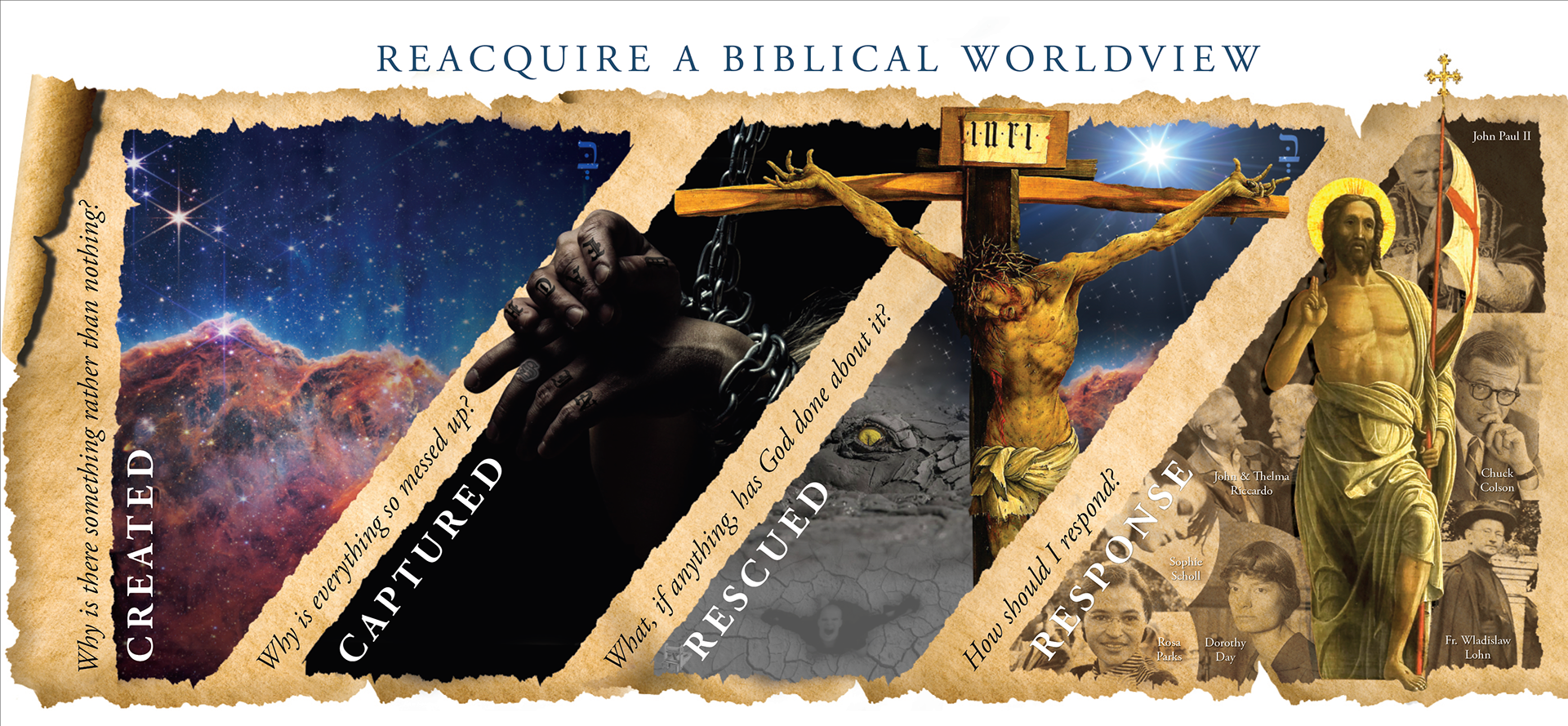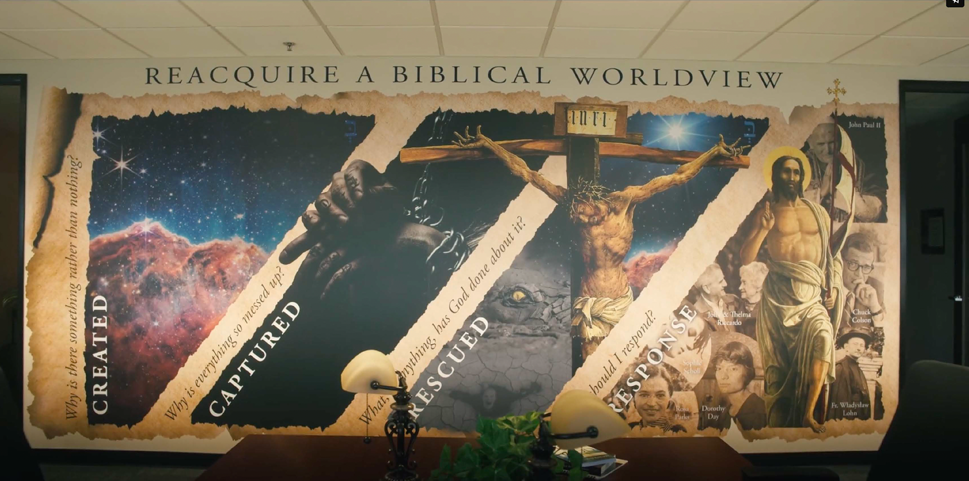 I designed a series of immersive murals for the headquarters of ACTS XXIX, an apostolate focused on renewing the Church through bold evangelization and priestly retreats. These murals visually proclaim the core message of the Gospel—Created, Captured, Rescued, Response—inviting all who pass by to enter into the story of salvation. Drawing from Romans 12:2, each mural emphasizes that true transformation of the Church and the world begins with the renewal of our minds. Designed to reflect the bold, missionary spirit of ACTS XXIX, the murals aim to inspire hope, spark conversation, and serve as a visual witness to the urgency and joy of the New Evangelization. View the murals here at the 1:00 and 2:18 marks.